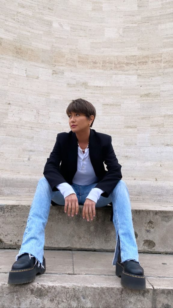 V priebehu času som skúšala rôzne štýly, podľa toho, ako som chcela vyjadriť svoju osobnosť. V minulých rokoch som nosila veľa pestrých odevov, ale naposledy dávam prednosť jednofarebným a klasickým odevom, napríklad mom-fit džínsom s jednofarebným tričkom, čižmám alebo keckám a koženej bunde alebo klasickému baloňáku v chladnejšom počasí.
